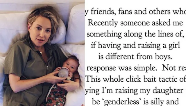 “Recently someone asked me something along the lines of, if having and raising a girl is different from boys,” Hudson writes. “My response was simple. Not really. This whole click bait tactic of saying I’m raising my daughter to be ‘genderless’ is silly and frankly doesn’t even make sense.”