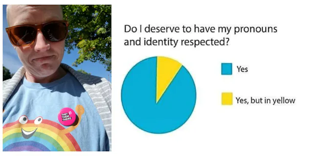 I am nonbinary. I do not identify as male or female, but as a perfect mix of both. Out of respect for myself, I tell people the pronouns I want them to use when talking to and about me. This is also a way to respect the person I am talking to because I am providing an inclusive and safe space for them to comfortably tell me how they would like to be referred to. In other words, I am a human with feelings, who, while wanting respect, wants to protect and respect the feelings of other humans I interact with.